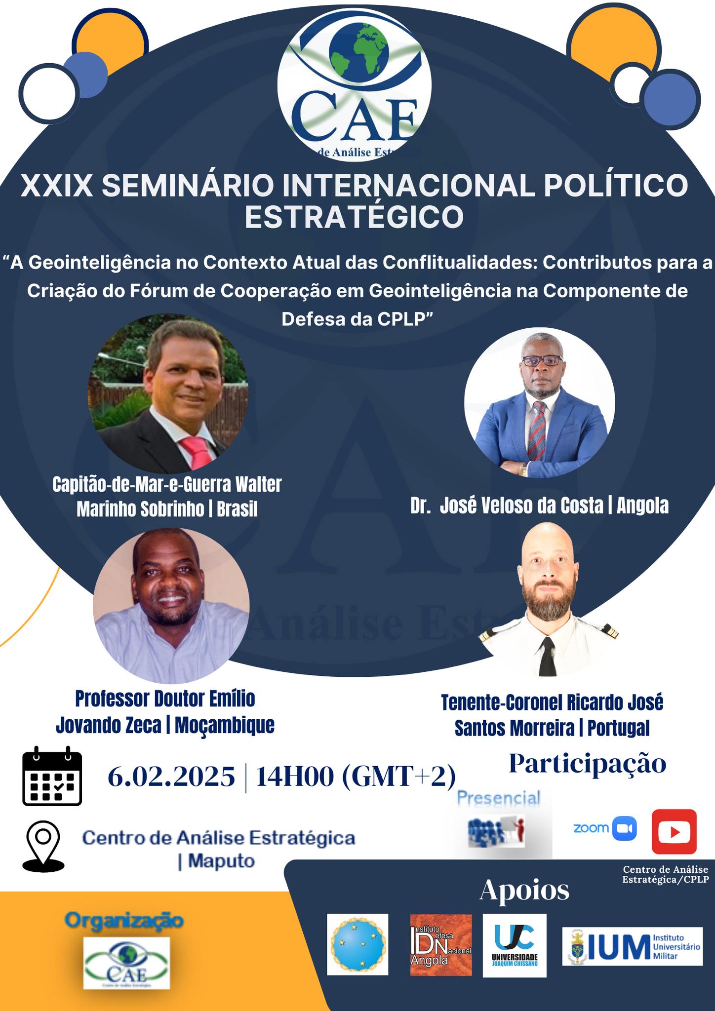 O ๐ช๐๐๐๐๐ ๐ ๐ ๐จ๐รก๐๐๐๐ ๐ฌ๐๐๐๐๐รฉ๐๐๐๐ da Comunidade dos Paรญses de Lรญngua Portuguesa (CAE/CPLP) organiza o ๐๐๐๐ ๐๐๐ฆ๐ข๐งรก๐ซ๐ข๐จ ๐๐ง๐ญ๐๐ซ๐ง๐๐๐ข๐จ๐ง๐๐ฅ ๐๐จ๐ฅรญ๐ญ๐ข๐๐จ ๐๐ฌ๐ญ๐ซ๐๐ญรฉ๐ ๐ข๐๐จ a 6 de fevereiro de 2025, presencialmente na sede do CAE/CPLP em Maputo e por videoconferรชncia.